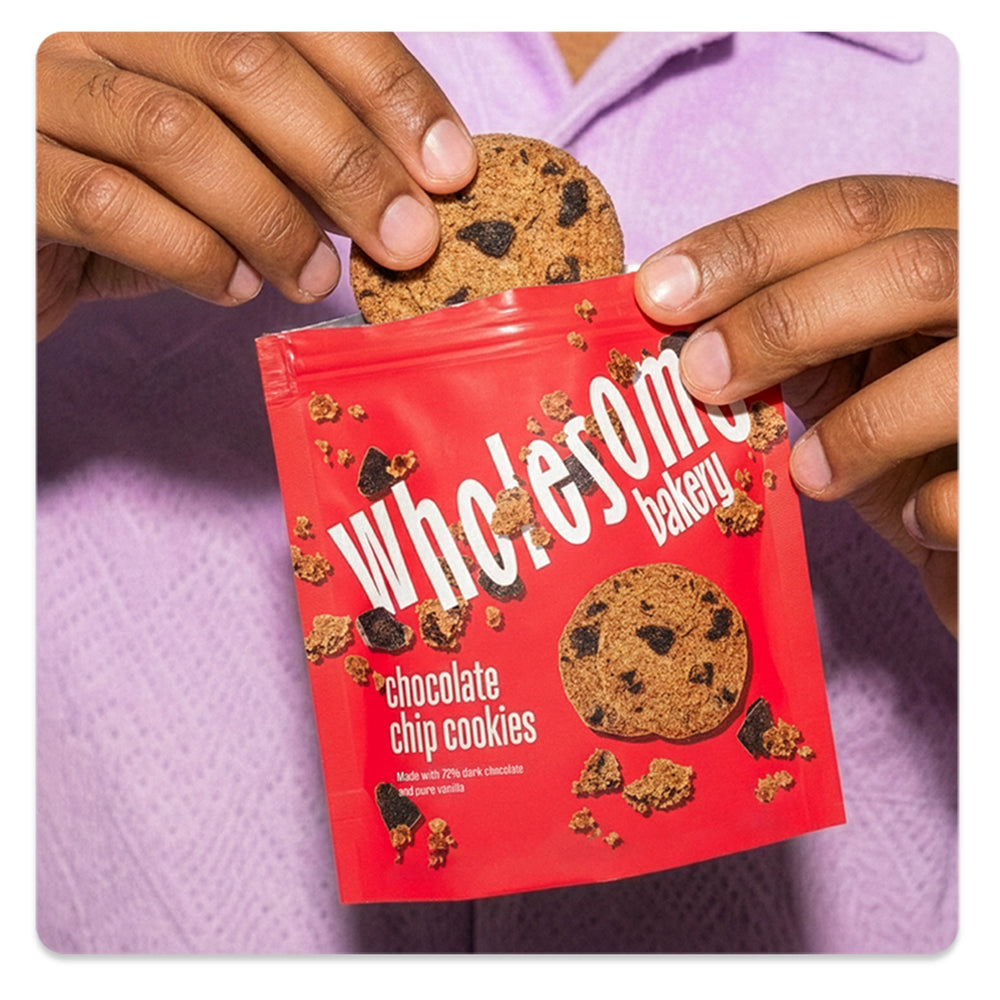 Your favorite cookies now in the perfect grab-and-go size! Our Chocolate Chip Cookies are loaded with rich dark chocolate chunks, wholesome flours, and natural sweeteners.